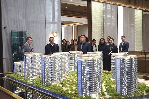 考察团实地参观了东海国际的景观示范区、精装样板间、艺术车库、超配式业主服务中心等核心功能区,深入了解东海集团在规划设计、工程建设、运维服务等方面的经验做法。